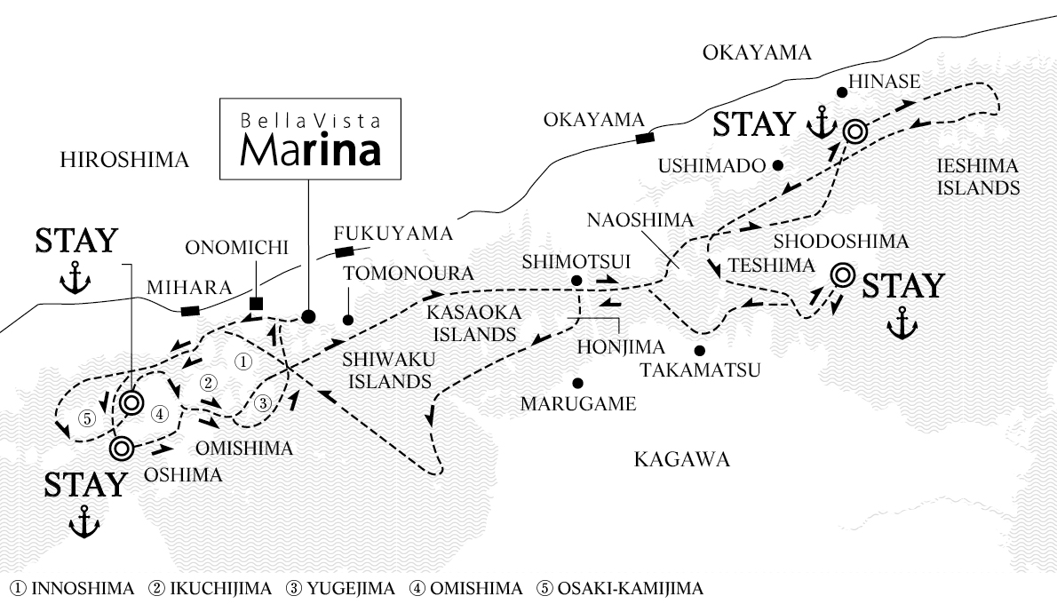 For the first time, guntû will sail eastward beyond Shodoshima to visit the Ieshima Islands on this special five-day, four-night cruise. Ieshima was once a harbor for seafarers waiting for favorable winds and tides. Later, as the wave of modernization reached these shores during Japan’s rapid economic growth, the islands’ quarries and shipping industry supplied infrastructure projects across the Osaka region.